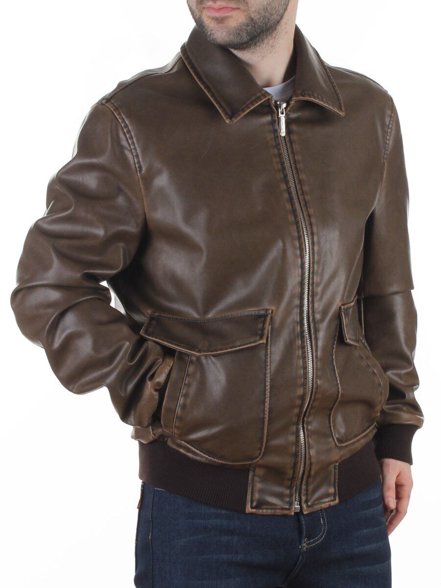 257994137 BROWN Куртка мужская демисезонная (эко-кожа)