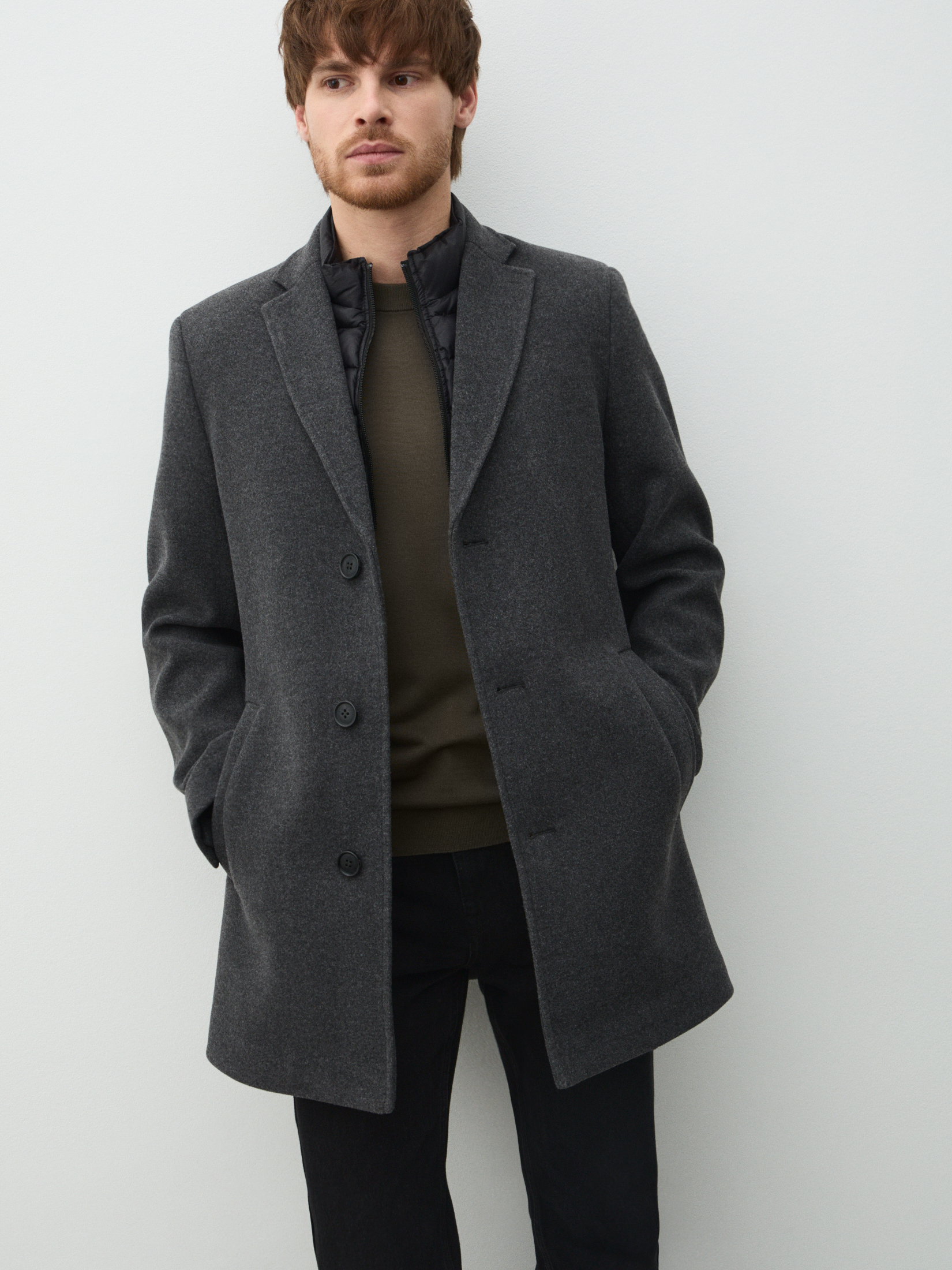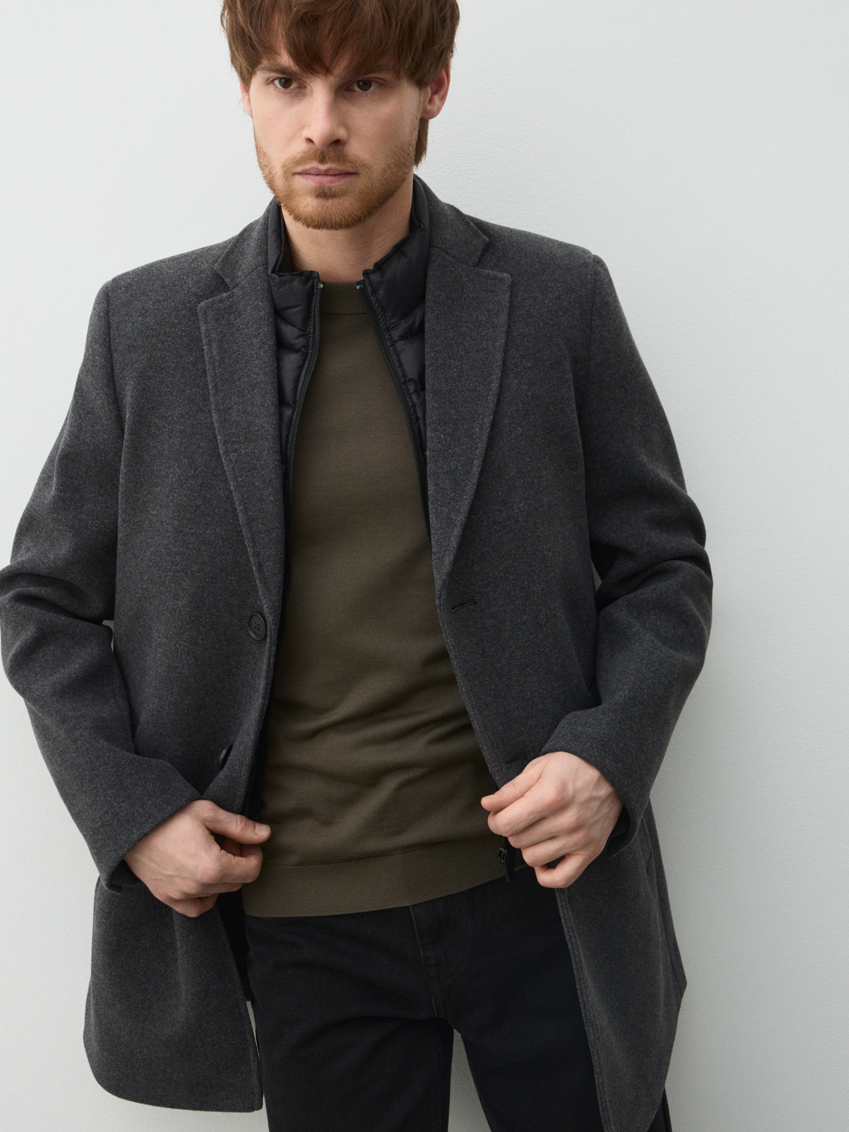 Мужское пальто с пуховым жилетом MAISON DAVID 5010862, серый