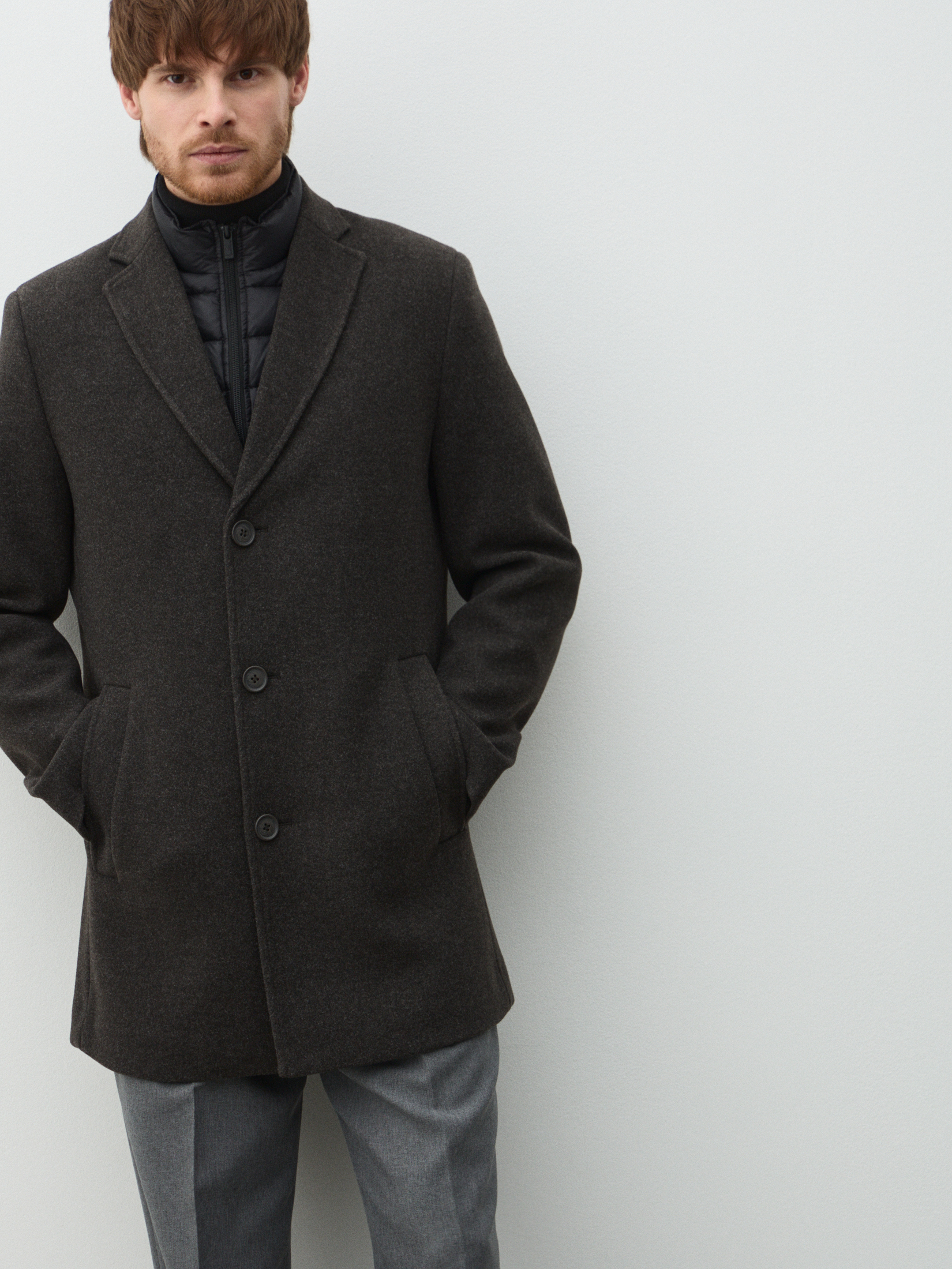 Мужское пальто с пуховым жилетом MAISON DAVID 5010864, бежевато-серый
