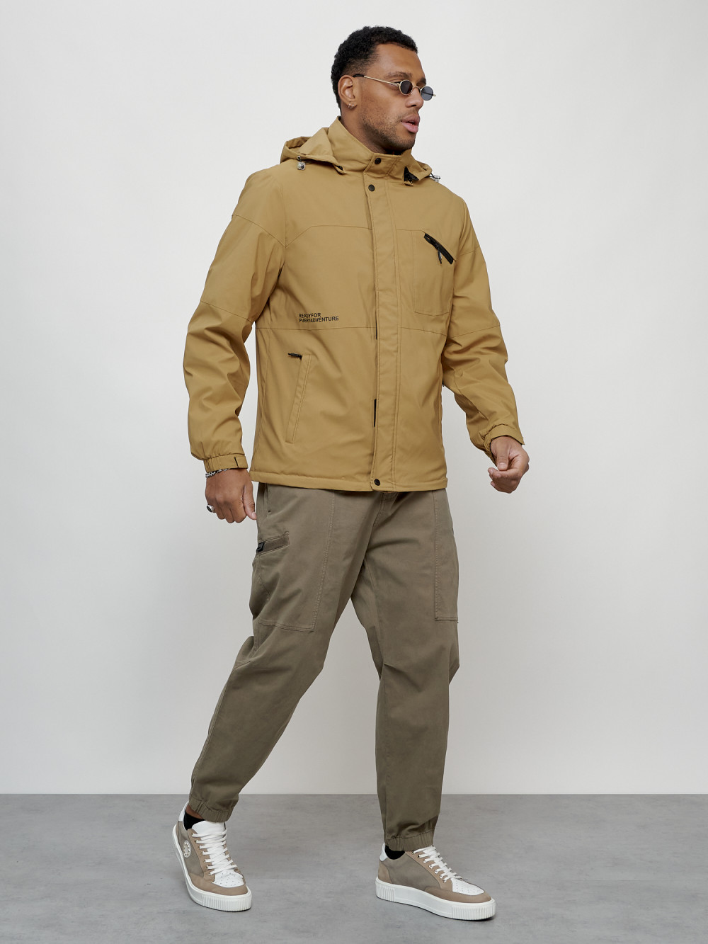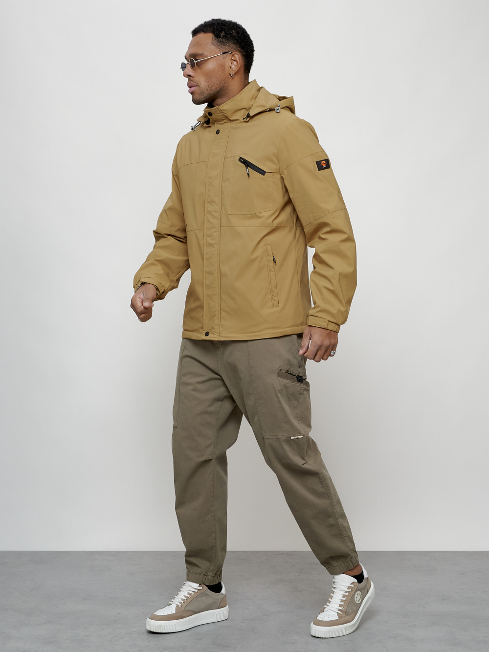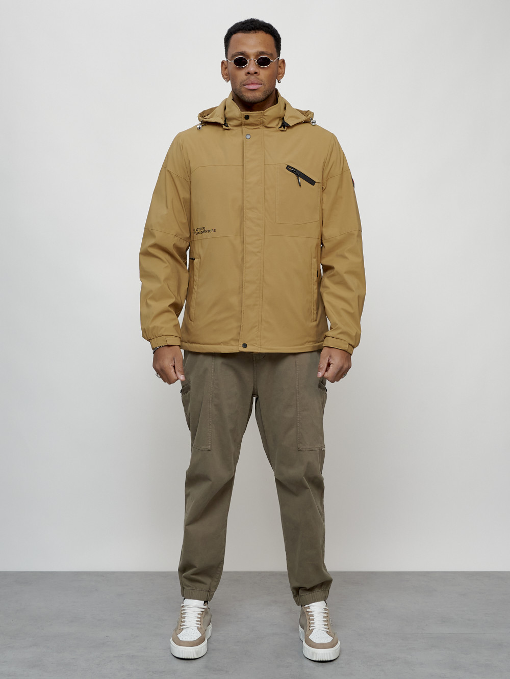 Куртка спортивная мужская весенняя с капюшоном бежевого цвета 88021B