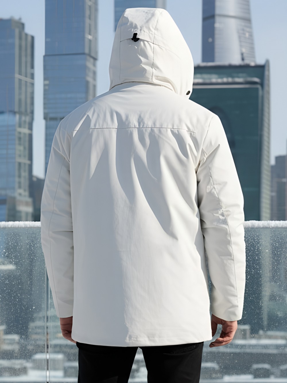 Плотная износостойкая ткань и продуманный утепляющий пакет работают как единая система защиты. Влагозащитные молнии YKK и аккуратно обработанные швы препятствуют промоканию, высокая горловина с мягким флисом бережно закрывает шею. Съёмный капюшон легко подстраивается по объёму, а манжеты и нижний край фиксируются так, чтобы внутрь не попадал снег.