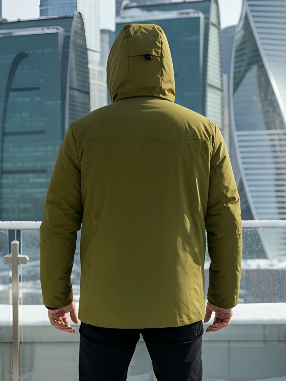 Плотная износостойкая ткань и продуманный утепляющий пакет работают как единая система защиты. Влагозащитные молнии YKK и аккуратно обработанные швы препятствуют промоканию, высокая горловина с мягким флисом бережно закрывает шею. Съёмный капюшон легко подстраивается по объёму, а манжеты и нижний край фиксируются так, чтобы внутрь не попадал снег.