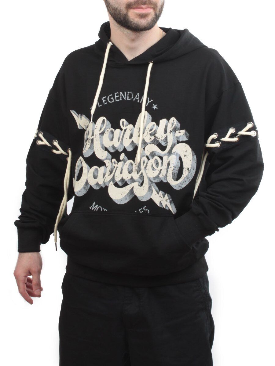 Трикотажные манжеты на рукавах и по низу толстовки.