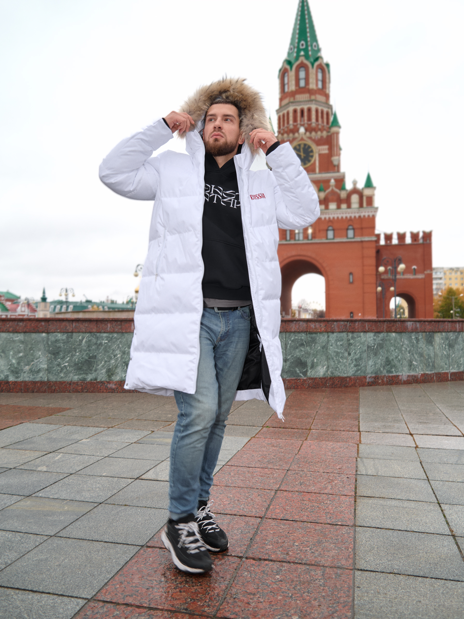 Пуховик мужской удлиненный "Russia" белый