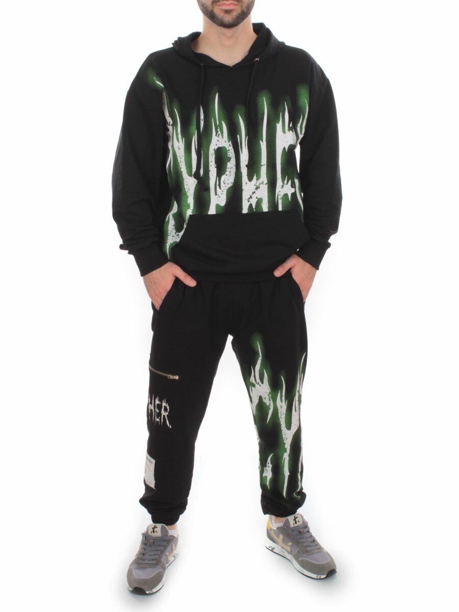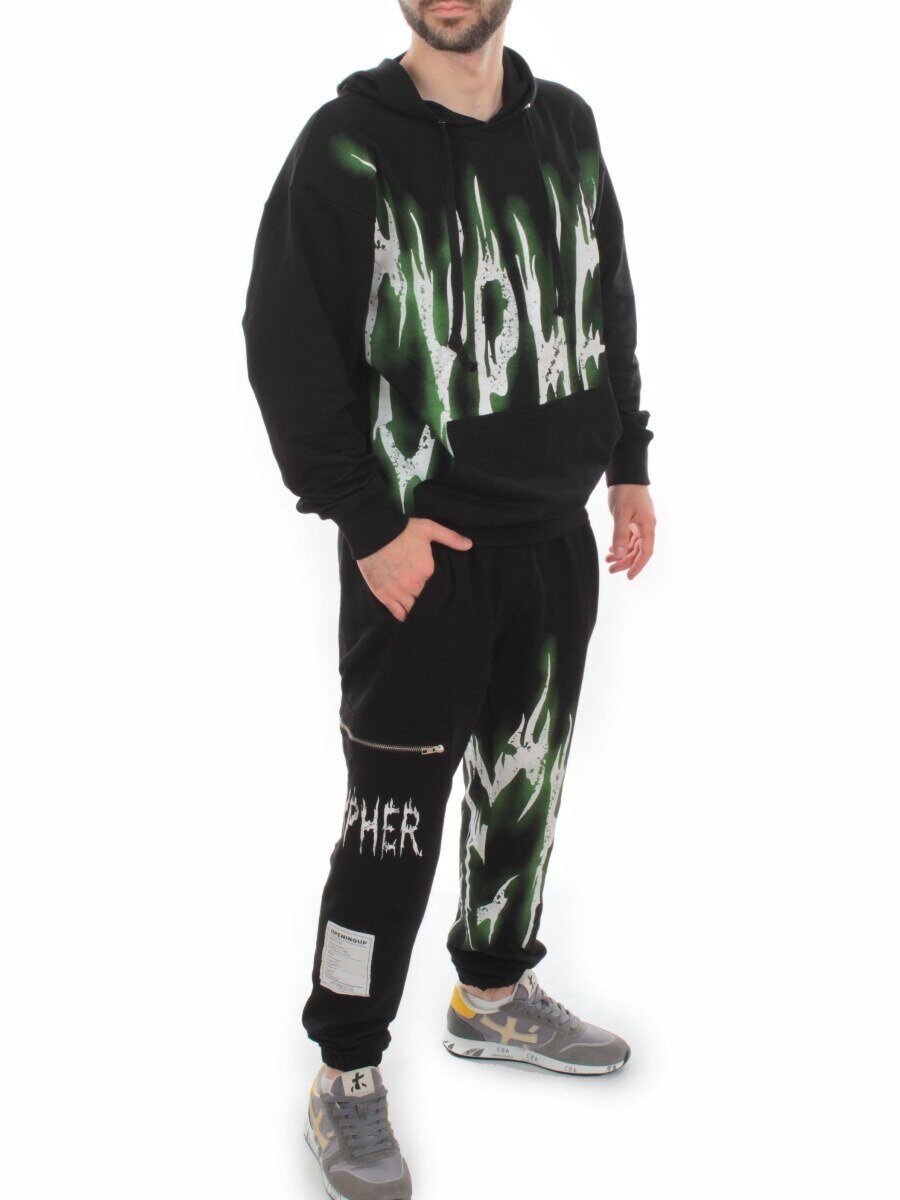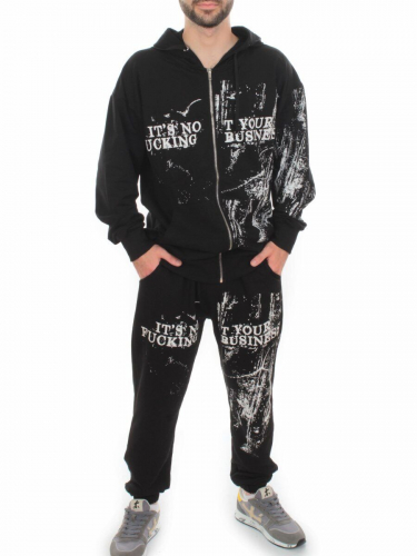 2627/7350 BLACK/GREEN Костюм спортивный мужской (75% хлопок, 20% полиэстер, 5% спандекс)