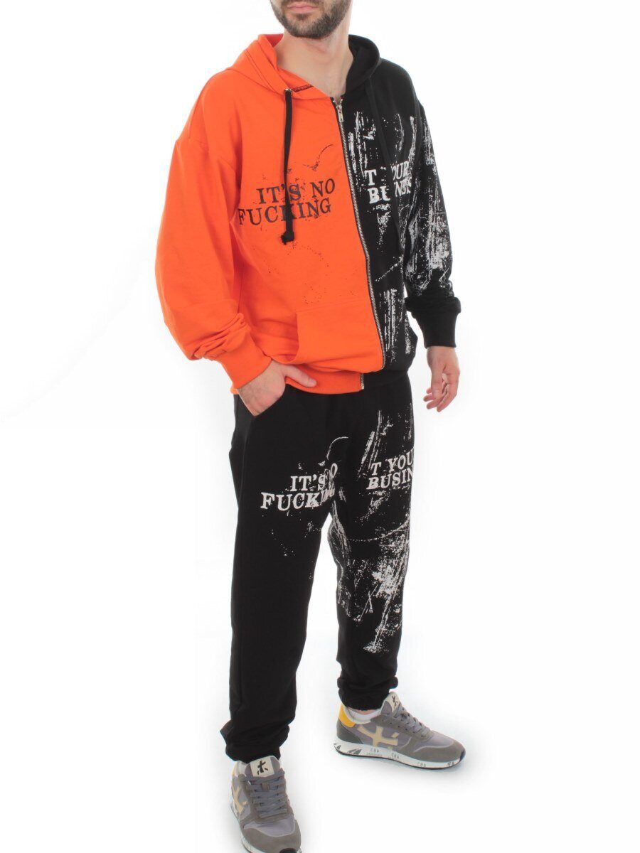 2630/7349 BLACK/ORANGE Костюм спортивный мужской (75% хлопок, 20% полиэстер, 5% спандекс)