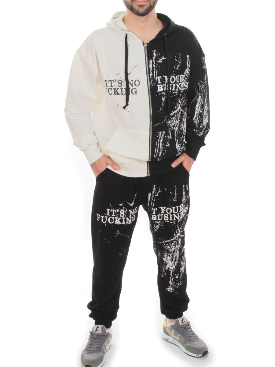 2630/7349 BLACK/WHITE Костюм спортивный мужской (75% хлопок, 20% полиэстер, 5% спандекс)