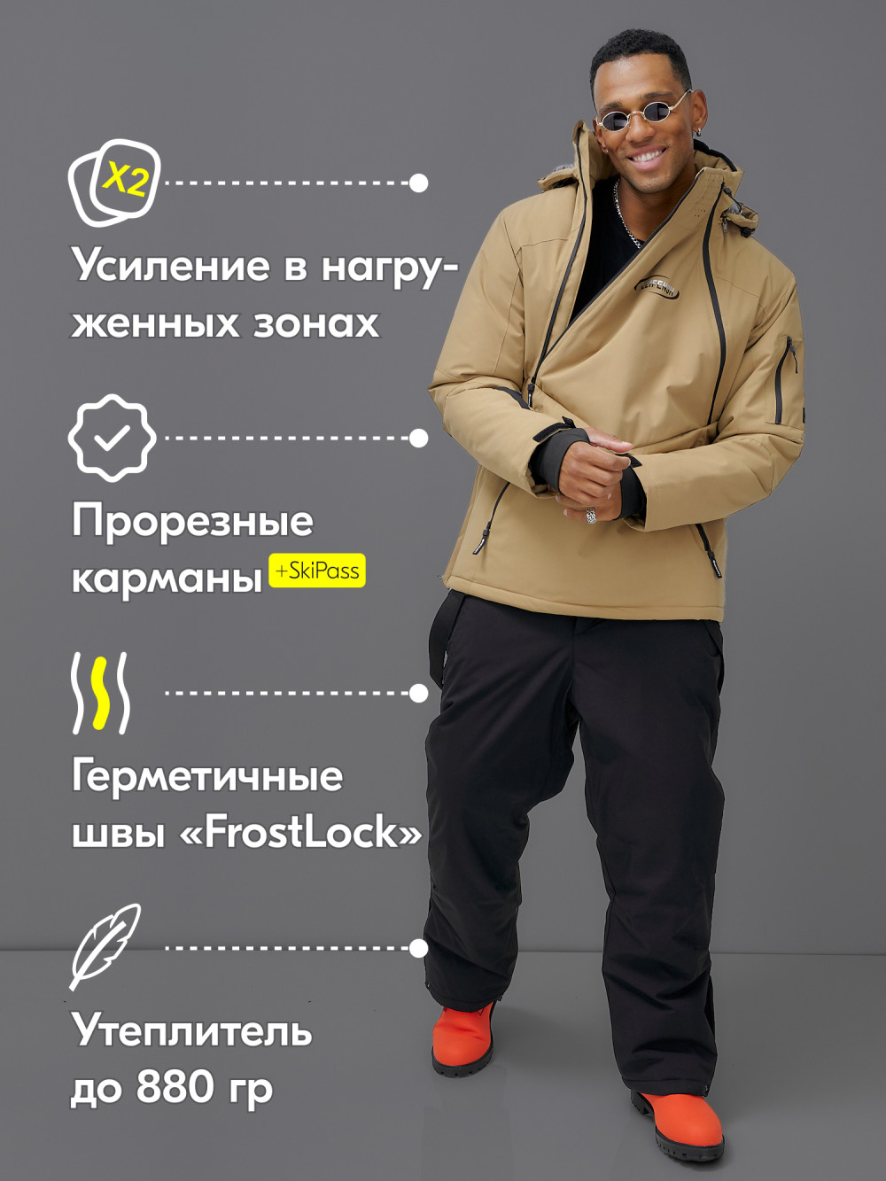 Представляем вашему вниманию наш уникальный мужской горнолыжный костюм, который включает в себя куртку-анорак и полукомбинезон. Этот комплект создан для тех, кто ценит активный отдых и хочет оставаться в тепле и сухости даже в самых суровых условиях.