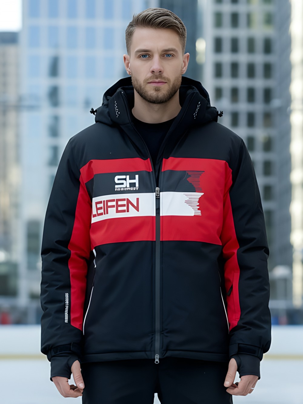 Мужской зимний горнолыжный костюм с надписями. Откройте для себя уникальный мужской горнолыжный костюм, созданный специально для тех, кто не представляет свою жизнь без зимних спортов и активного отдыха на свежем воздухе. Этот костюм был разработан с учетом всех потребностей горнолыжников, обеспечивая не только отличную защиту от холода и ветра, но и стильный внешний вид. Куртка: