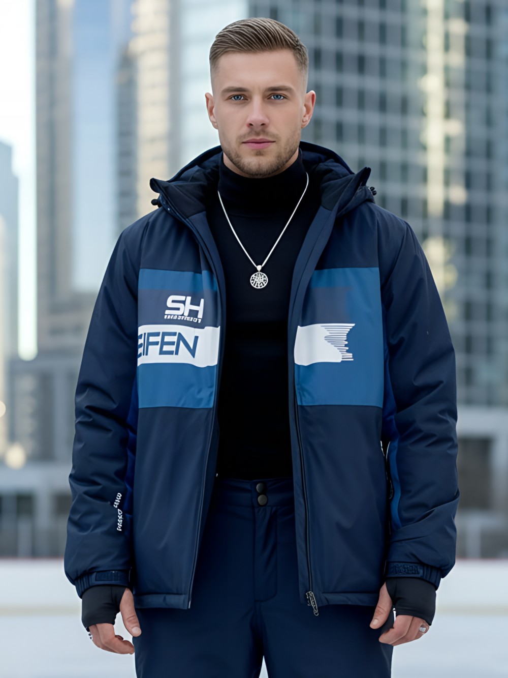 Мужской зимний горнолыжный костюм с надписями. Откройте для себя уникальный мужской горнолыжный костюм, созданный специально для тех, кто не представляет свою жизнь без зимних спортов и активного отдыха на свежем воздухе. Этот костюм был разработан с учетом всех потребностей горнолыжников, обеспечивая не только отличную защиту от холода и ветра, но и стильный внешний вид. Куртка: