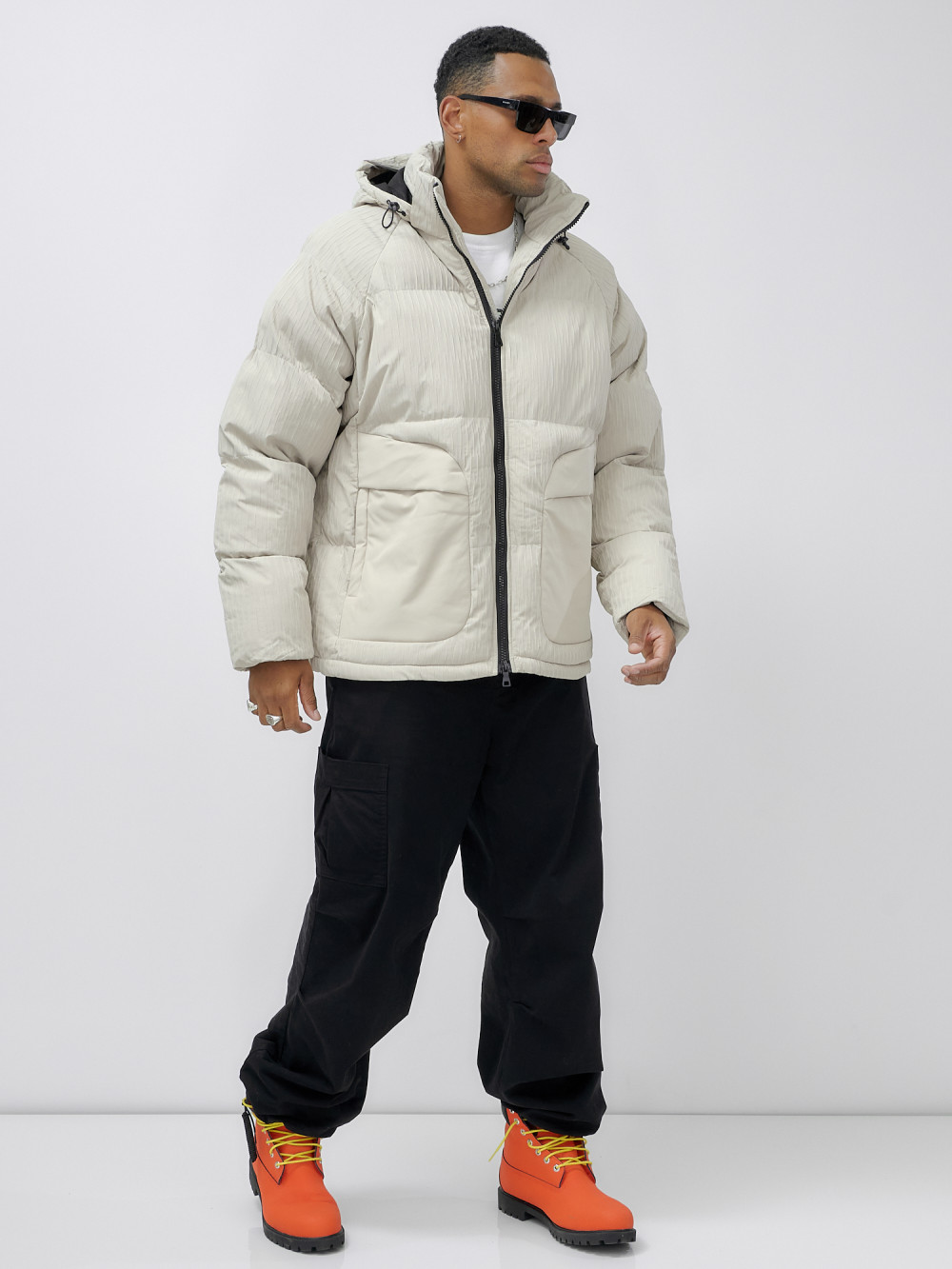Куртка молодежная мужская зимняя с капюшоном бежевого цвета 25307B