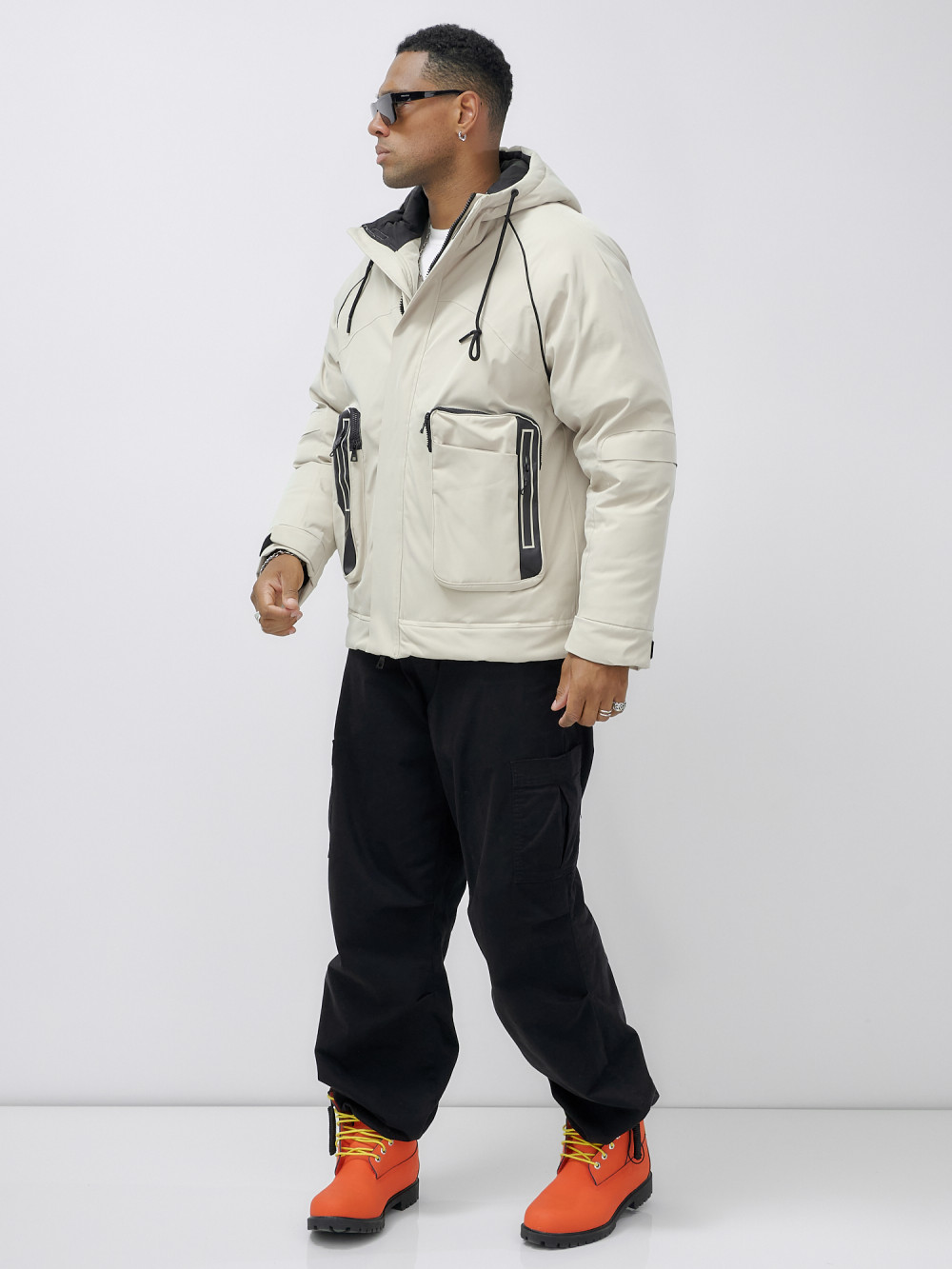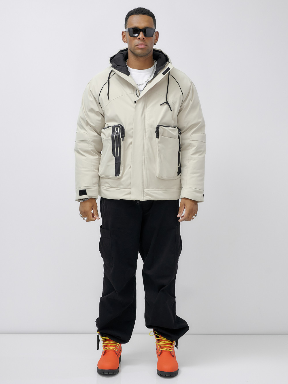 Куртка молодежная мужская зимняя с капюшоном бежевого цвета 25313_1B