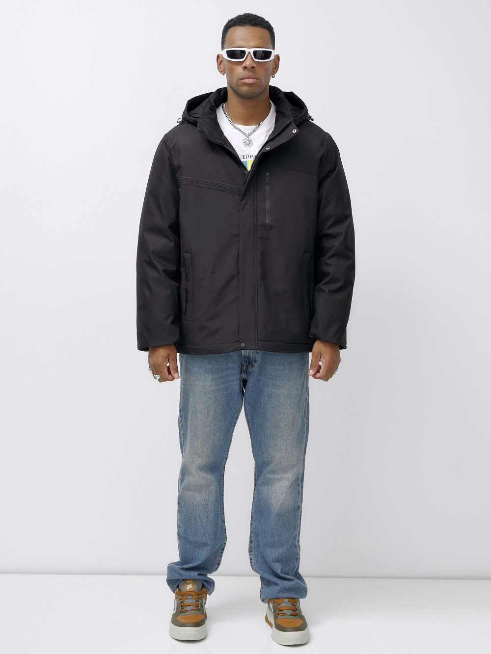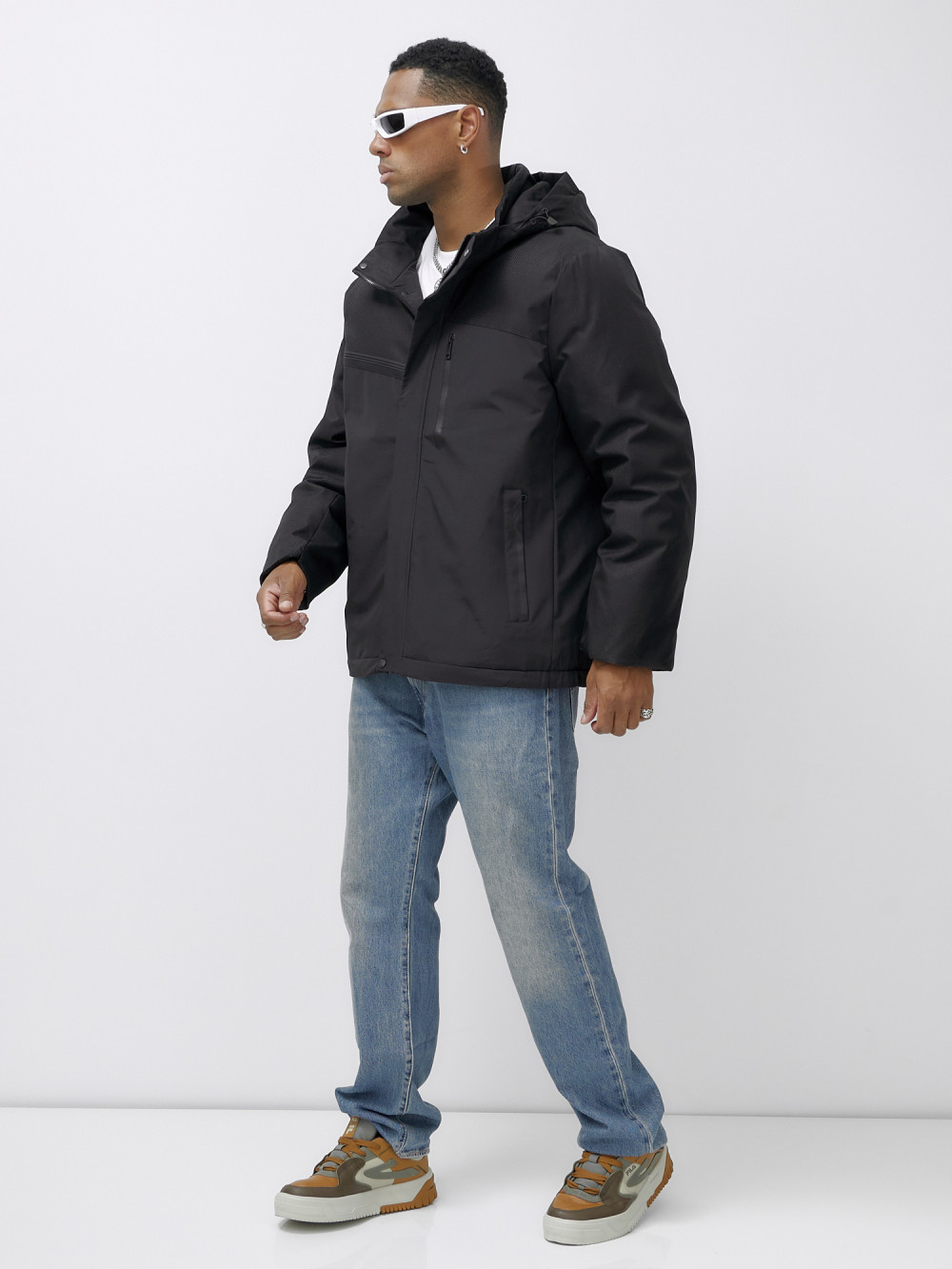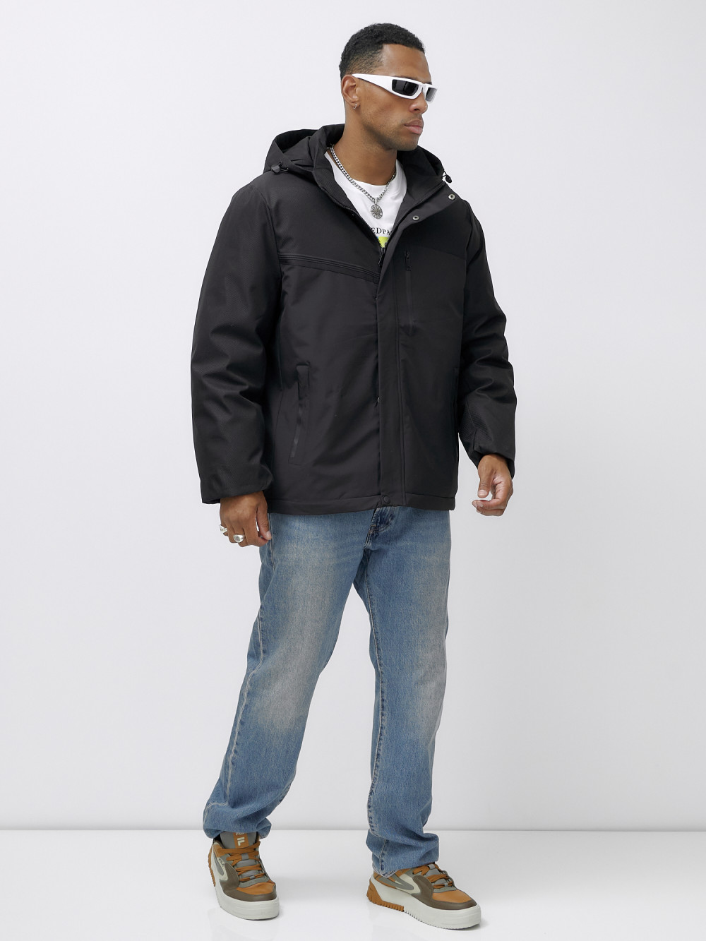 Куртка спортивная мужская зимняя большого размера черного цвета 66613Ch
