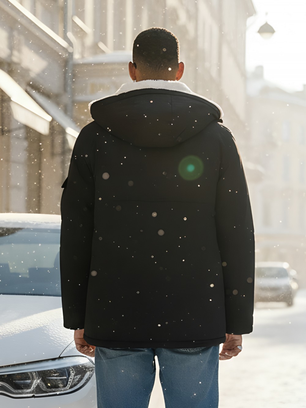 - Длина ниже бедра: Парка надежно закрывает спину и защищает от пронизывающего ветра, обеспечивая максимальный комфорт в холодные дни.