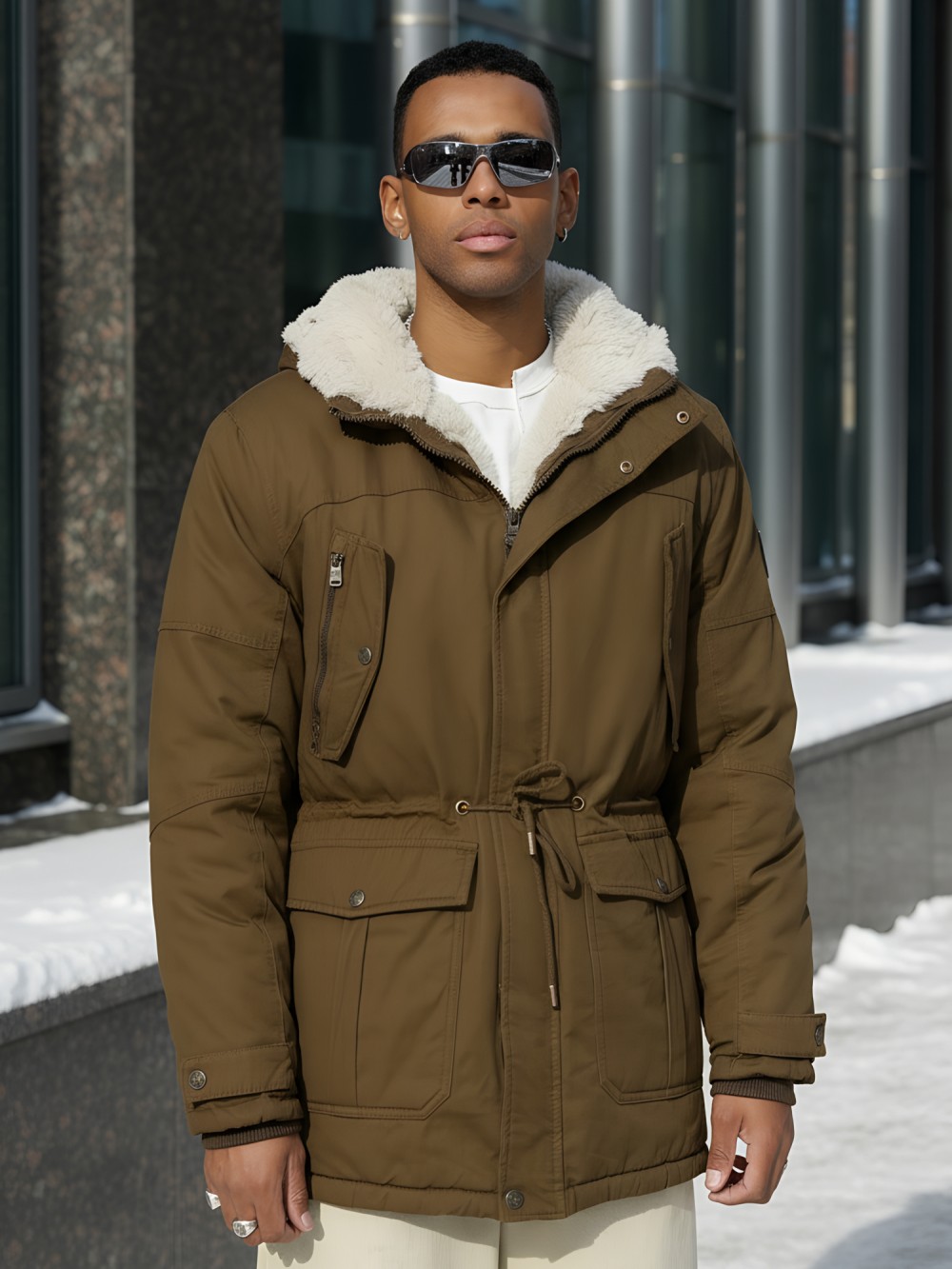 Мужская зимняя парка с меховым капюшоном - идеальный спутник для зимних морозов.