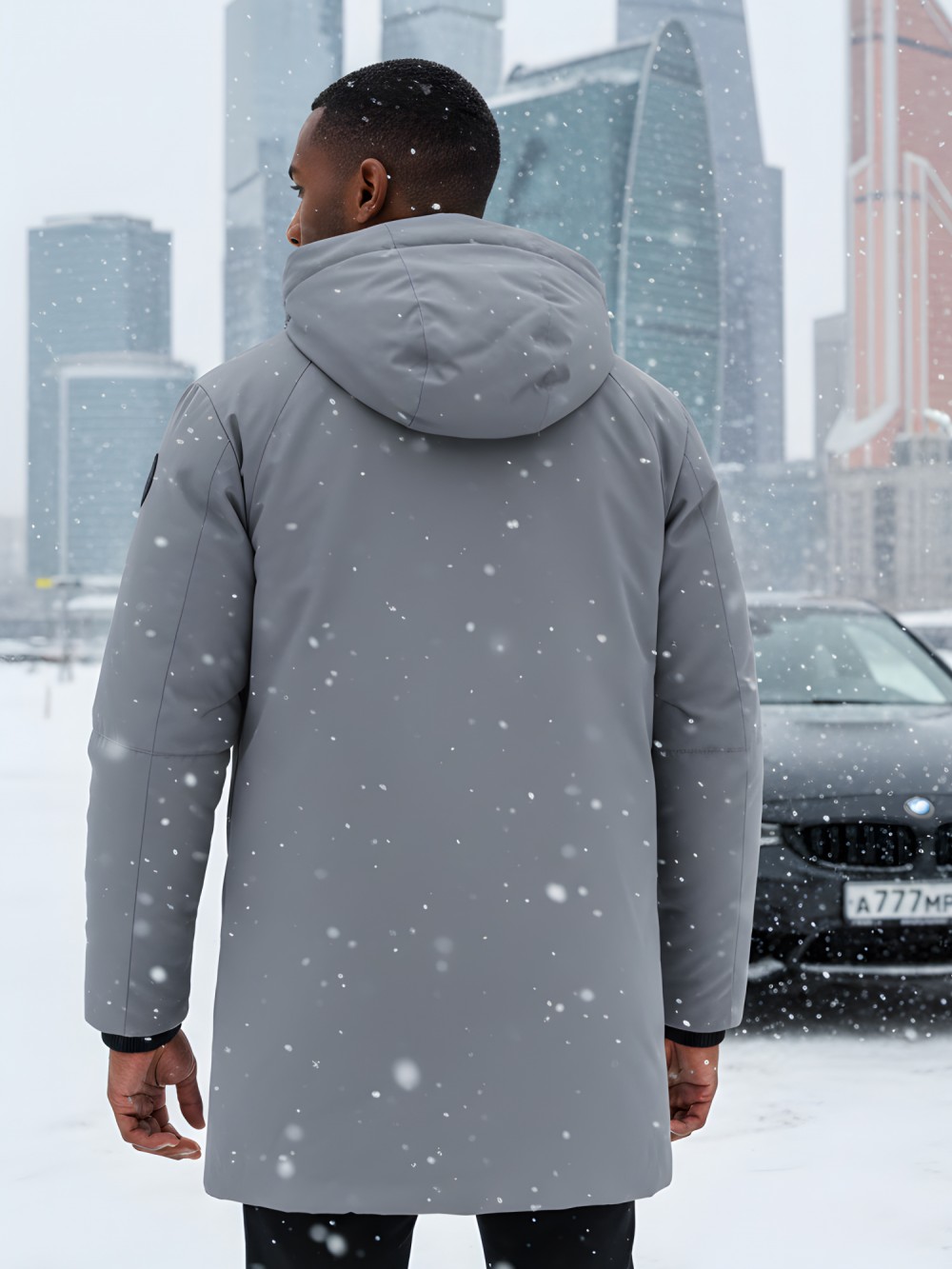 Зимняя мужская парка с капюшоном — практичная и надёжная модель, созданная для повседневной носки и активного отдыха в холодное время года. Свободный крой до колена обеспечивает комфорт и свободу движений, а плотная водоотталкивающая ткань с проклеенными швами защищает от ветра и влаги. Утеплитель тинсулейт плотностью 300 г/м² удерживает тепло даже в сильные морозы, оставаясь лёгким и удобным в носке.