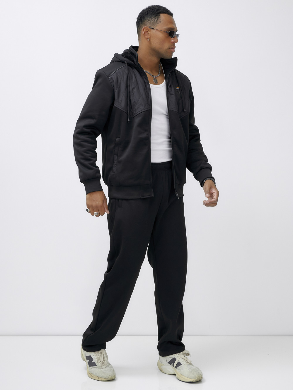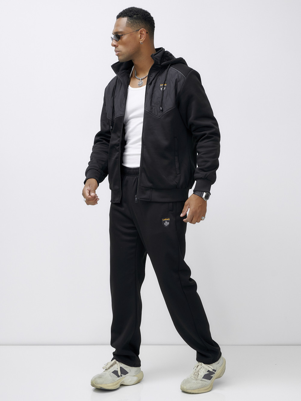 Спортивный костюм мужской зимний с начесом черного цвета 7332Ch