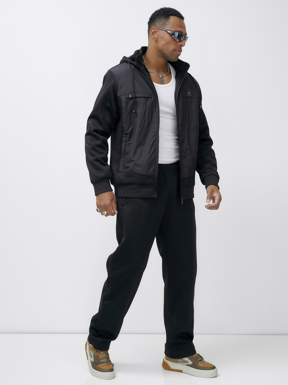 Спортивный костюм мужской зимний с начесом черного цвета 7336Ch