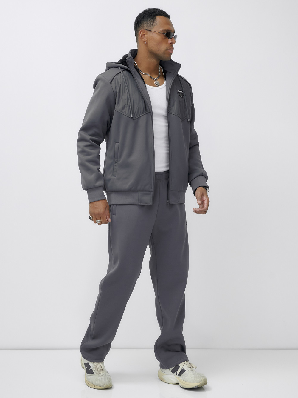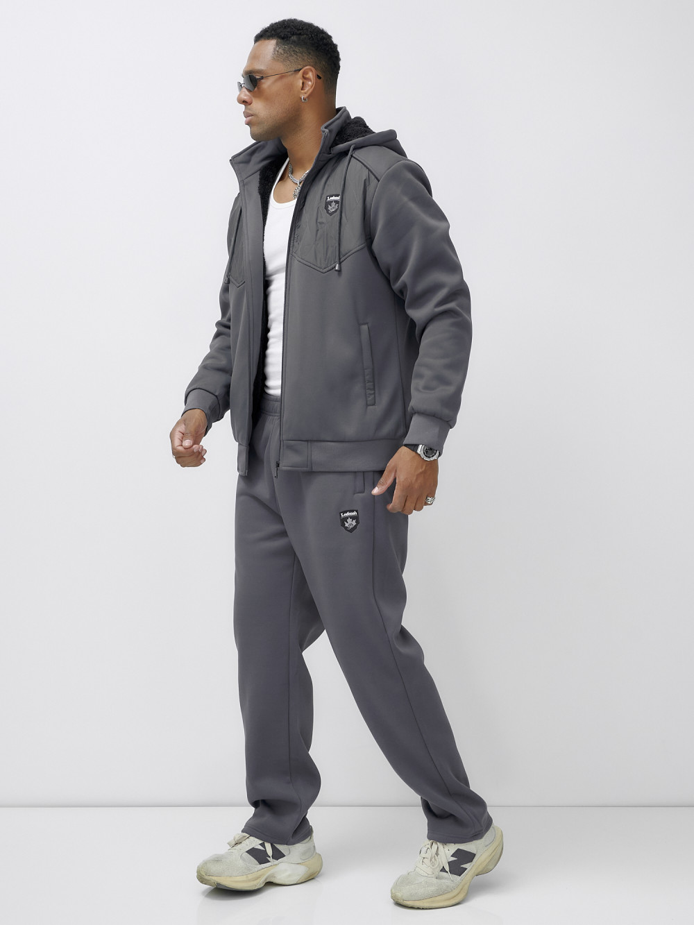 Спортивный костюм мужской зимний с начесом серого цвета 7332Sr