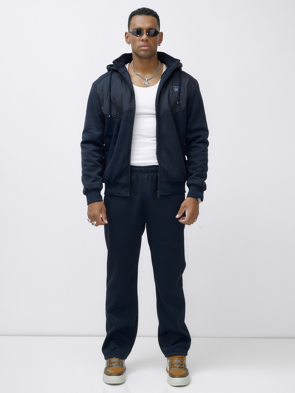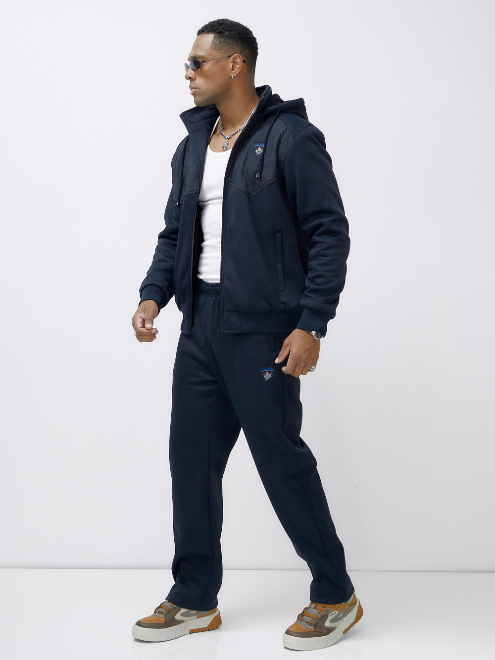 Спортивный костюм мужской зимний с начесом темно-синего цвета 7332TS