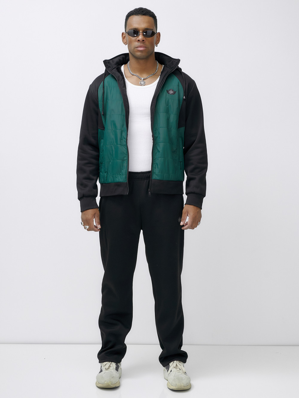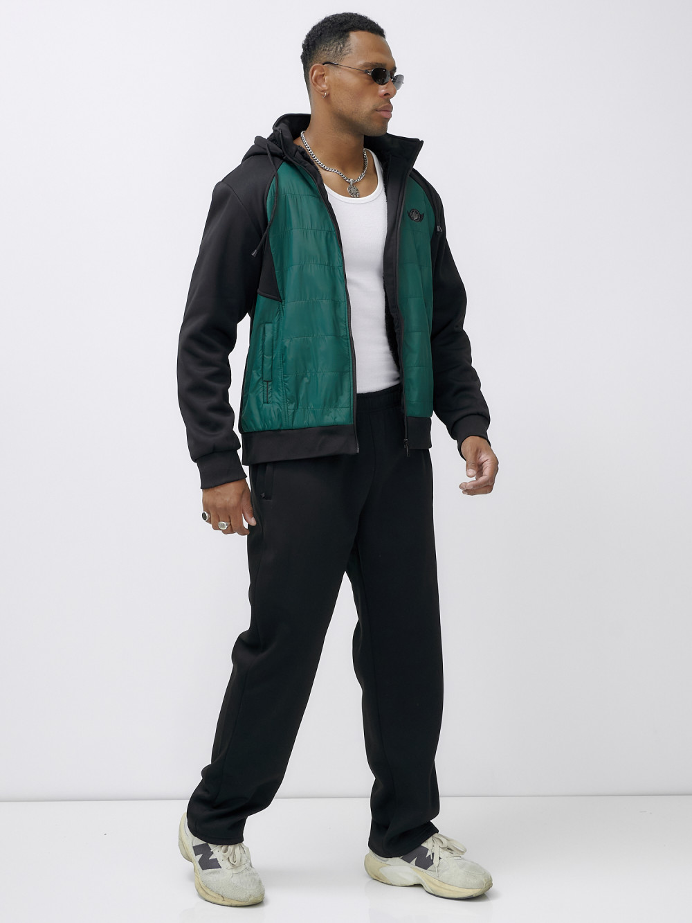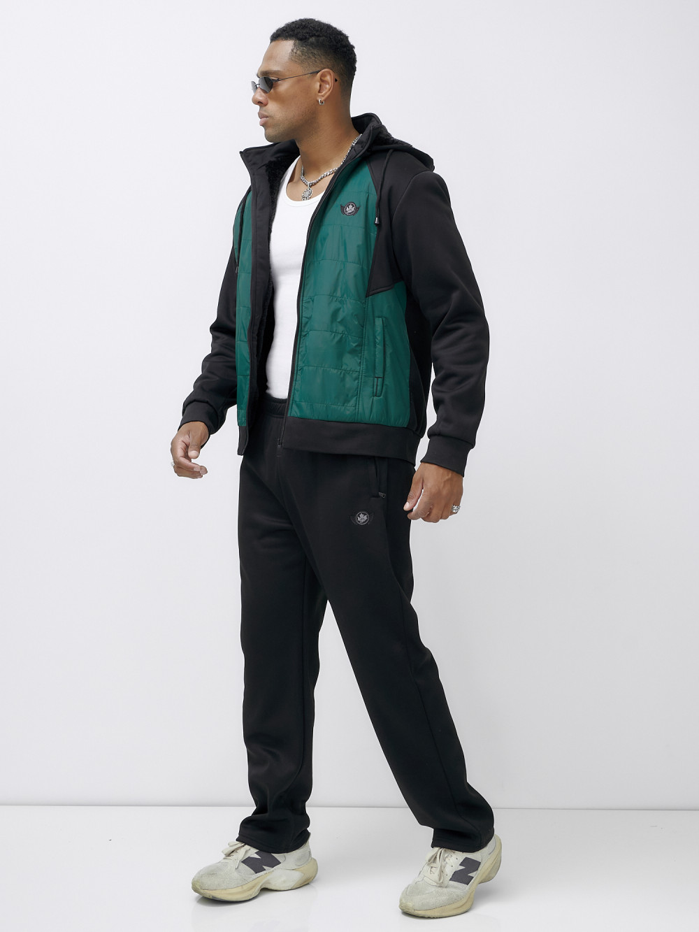 Спортивный костюм мужской зимний с начесом зеленого цвета 7335_1Z
