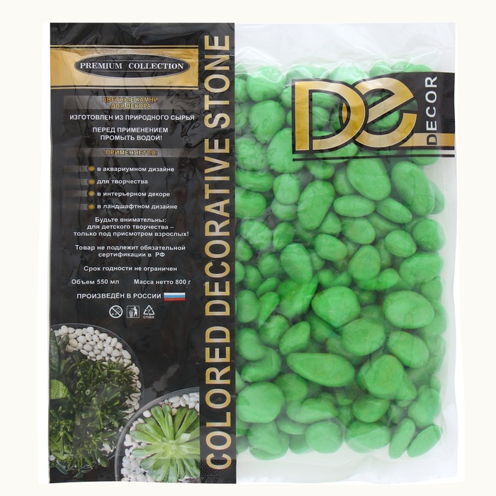 Грунт для аквариума DECOR DE «Галька цветная», фр. 8-12 мм, салатовая, 800 г