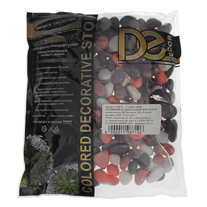 Грунт для аквариума DECOR DE «Галька цветная», фр. 8-12 мм, сиреневый/белый/розовый/фиолетовый, 800 г