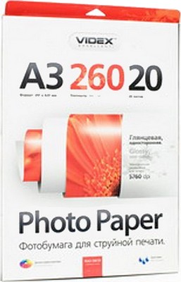 Фотобумага Videx A3 260г/м2 глянцевая HGA3-260/20л.