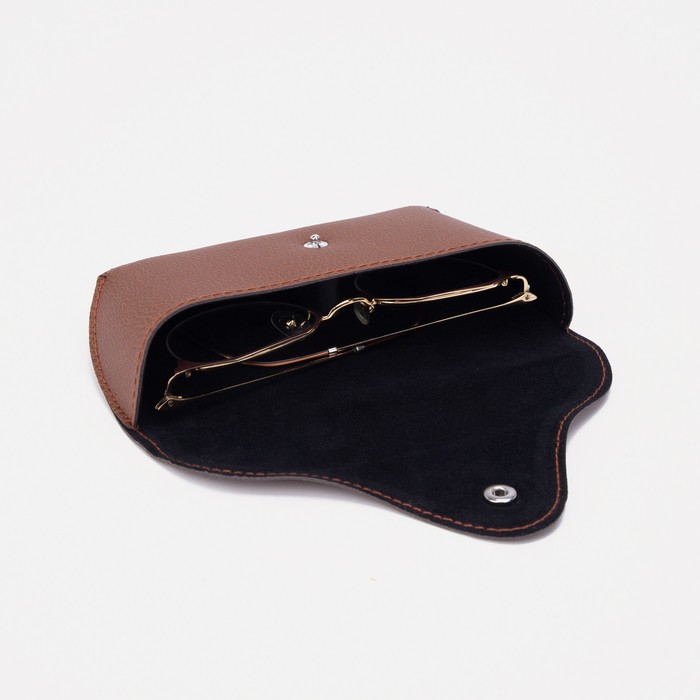 Футляр для очков на кнопке, 16×3.5×6.5 см, коричневый