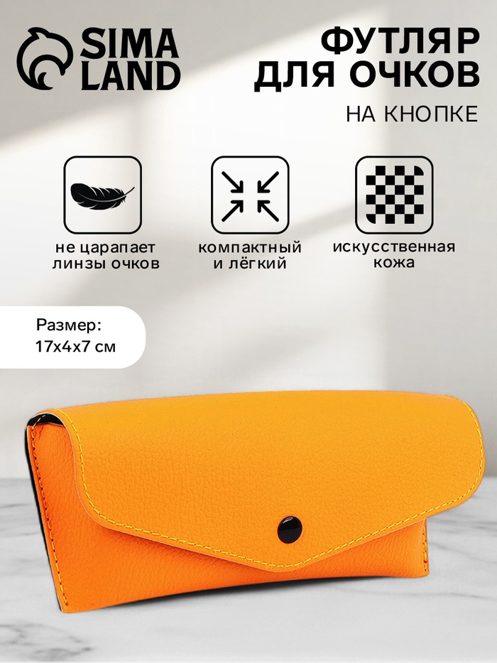 Футляр для очков на кнопке, однотонный, размер 17×4×7 см, оранжевый