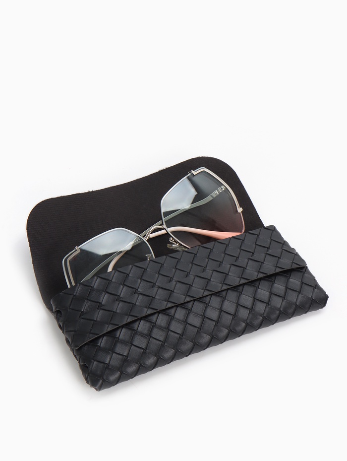 Футляр для очков на ремешке, однотонный, размер 16.5×7×1.8 см, чёрный