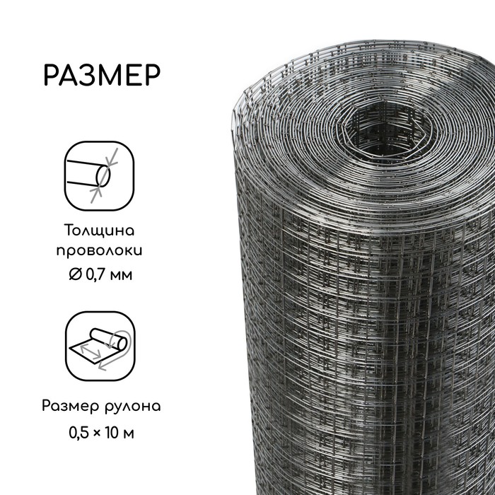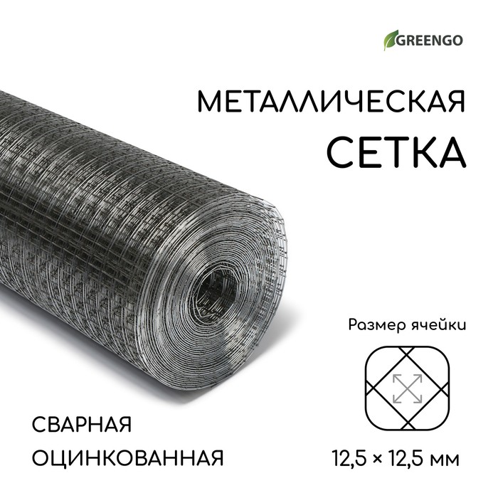 Сетка оцинкованная, сварная, 10×0.5 м, ячейка 12.5×12.5 мм, d=0.7 мм, Greengo
