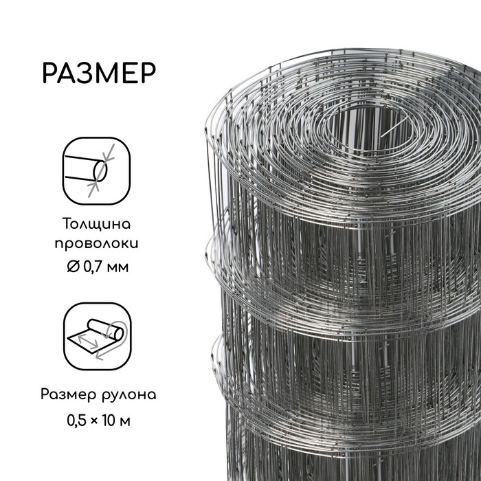 Сетка оцинкованная, сварная, 10×0.5 м, ячейка 25×25 мм, d=0.7 мм, Greengo
