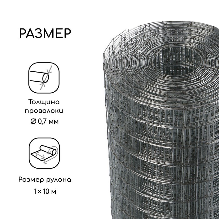 Сетка оцинкованная, сварная, 10×1 м, ячейка 20×20 мм, d=0.7 мм, Greengo