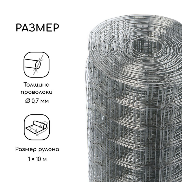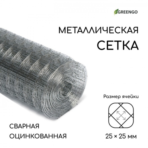 Сетка оцинкованная, сварная, 10×1 м, ячейка 25×25 мм, d=0.7 мм, Greengo