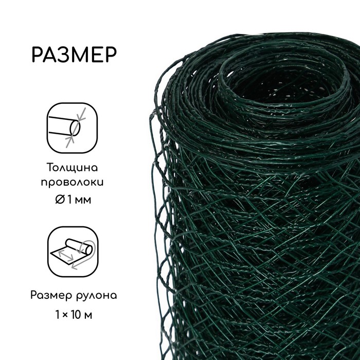 Сетка плетёная с ПВХ покрытием, 10×1 м, ячейка 25×25 мм, d=0.9 мм, металл, Greengo