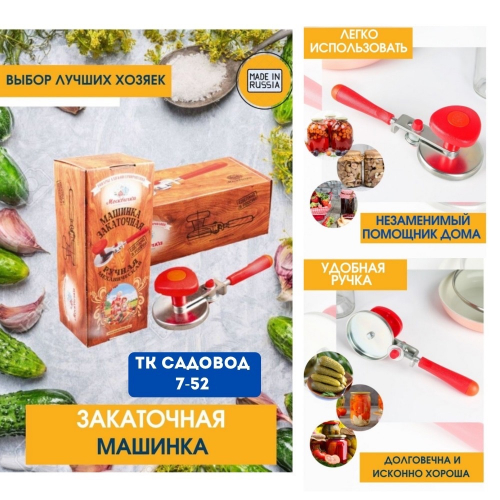 Закаточная ручная машинка МОСКВИЧКА предназначена для закатывания стандартных банок (1-82) одноразовыми жестяными крышками.Такой способ заготовок проверен не только годами, а столетиями и является одним из самых надежных. Выбор самых лучших хозяек: на радость семье, на зависть соседкам!Это чудо машинка кроме самой функции закатывания оснащена автоматическим стопором, который не позволит Вам пережать Стекло. Она закрепит крышку ровно, на сколько необходимо.Вы полностью контролируете процесс, так как у Вас есть возможность отрегулировать плавность вращения диска и ролика для Вашего удобства.Улитка оснащена диском и роликом подобно граммофонной иглы скользящей по спирали пластинки к центру. Желаем Вам вкусной и сытной зимы с закаточной машинкой нового поколения!