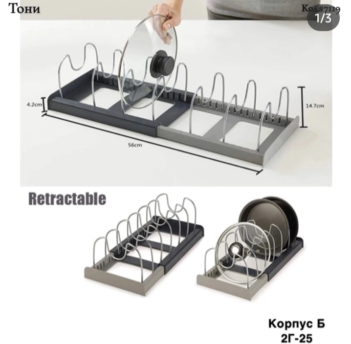 Раздвижной держатель для крышек, сковородок и кастрюль - незаменимый помощник для тех, кто хочет сэкономить пространство и поддерживать порядок в кухонных шкафах. Очень удобная конструкция, которая может трансформироваться.