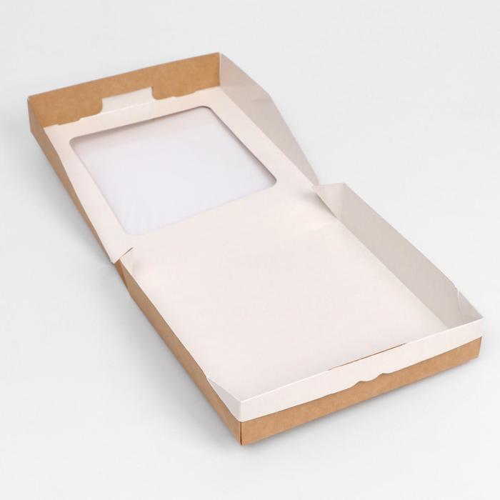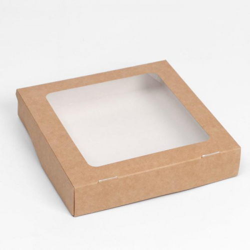 Коробка контейнер на вынос, с окном, крафт, 20×20×4 см
