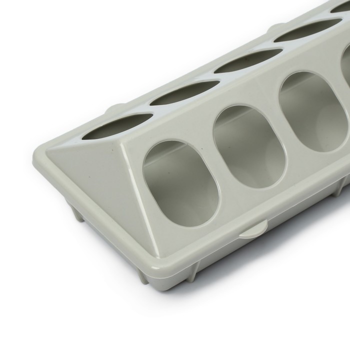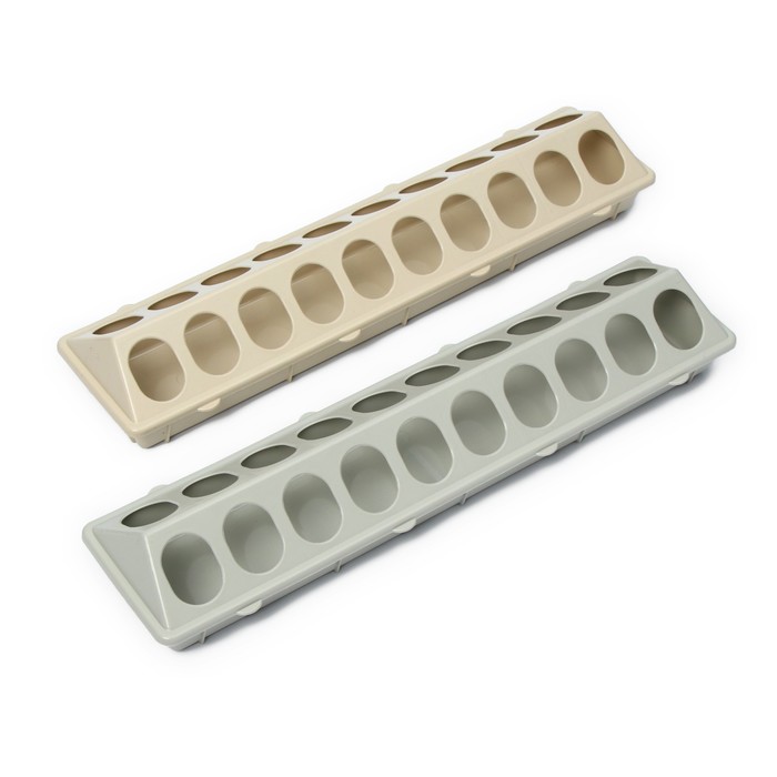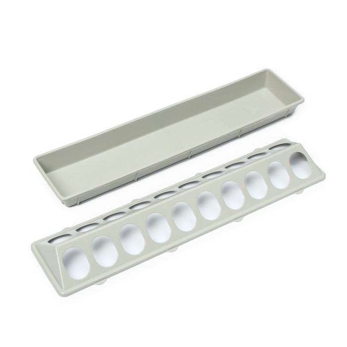 * Лотковая конструкция: низкий бортик и открытый верх дают перепелам возможность питаться естественно, без ограничений. Такой формат минимизирует потери корма, так как птицы не могут его разгребать.