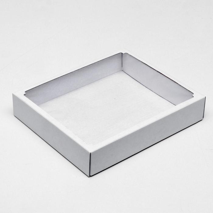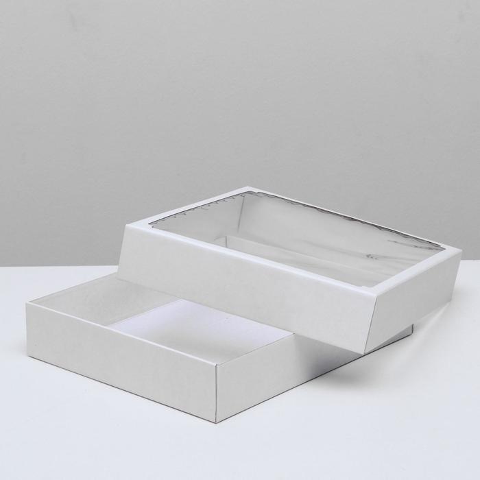 Коробка сборная без печати крышка-дно белая с окном 37×32×7 см