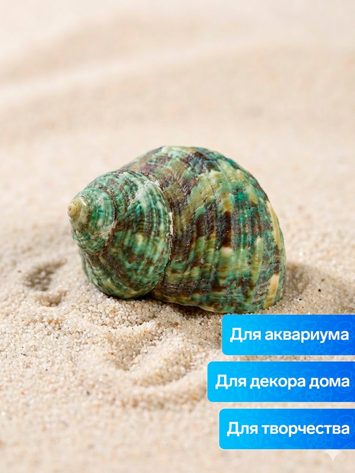 Декор без лишнего: Зелёные ракушки работают там, где важна естественность. В аквариуме они могут служить убежищем для креветок, в террариуме — частью ландшафта, в интерьере — деталью, которая не кричит, а дополняет.