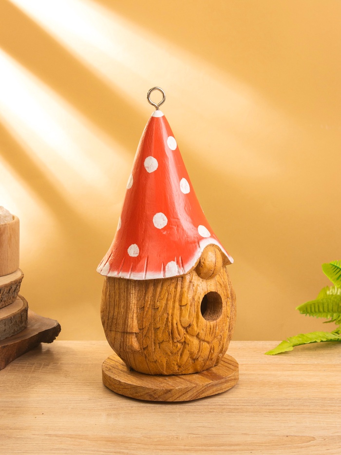 Скворечник подвесной «Гномик в красной шляпе», 14×14×26 см, дерево джампинис