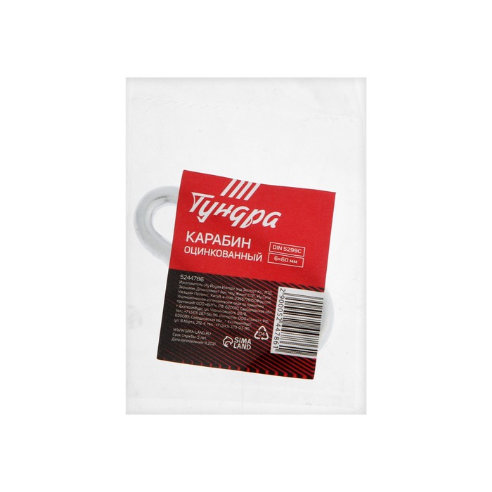 Карабин ТУНДРА krep, DIN5299С, 6×60 мм, оцинкованный, 1 шт.