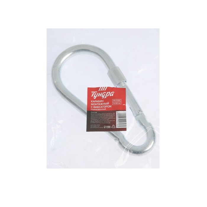 Карабин монтажный с фиксатором ТУНДРА krep, DIN5299D, 14×180 мм, оцинкованный