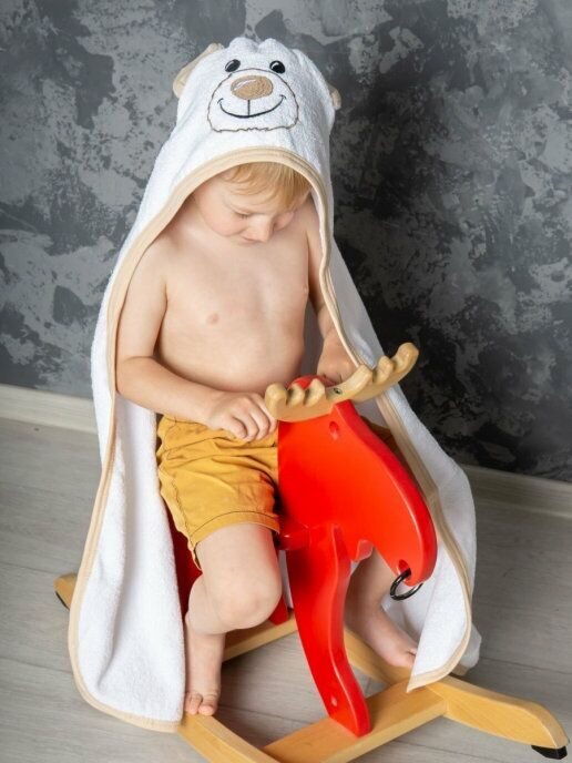 Уголок махровый детский "Мишка"-бел-бежев. 95*95 см. хлопок 100%