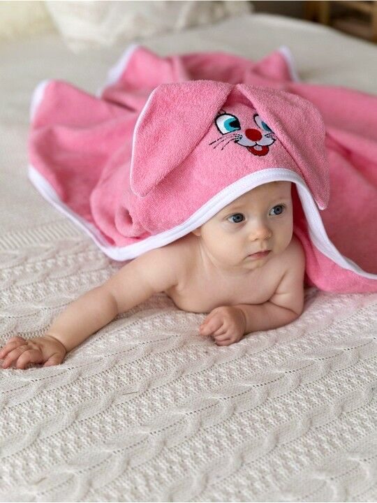 Детское супер-мягкое полотенце с капюшоном для малышей с рождения. Выполнено из 100% гипоаллергенного хлопка. Отлично впитывает влагу и быстро сохнет.