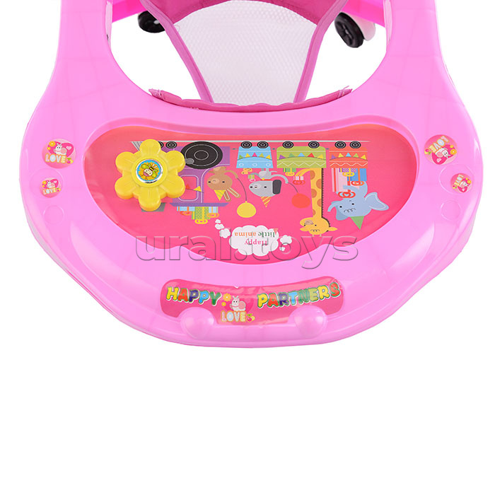 Ходунки "Цветок" со звуком (розовый) в пакете