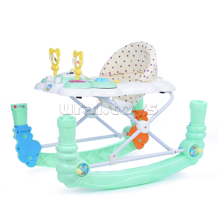 С помощью выдвижных опор снизу и трансформирующейся основы ходунки становятся качалкой для ребенка.
