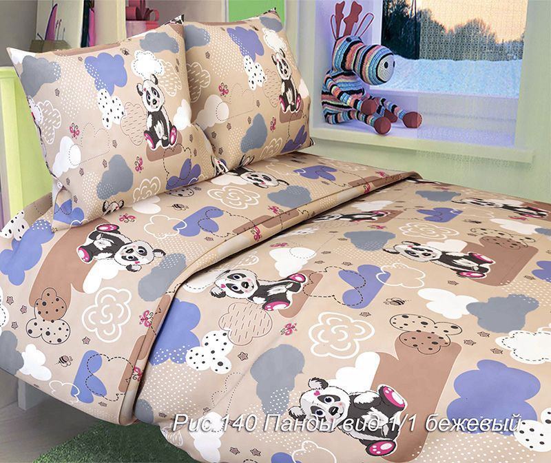 ДКПБ в кроватку бязь 135 гр/м (наволочка 40х60 см) Панды арт. 140-1/1 (бежевый)